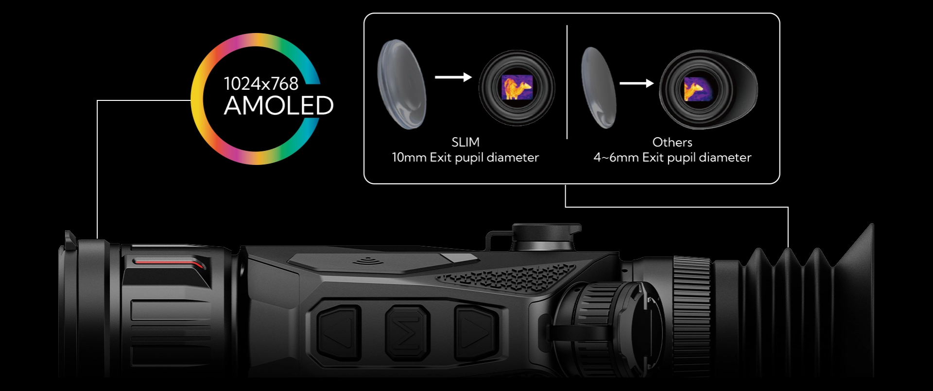 Experience fatigue-free observation with a 1024x768 AMOLED display, a redesigned eyepiece, and a comfortable 10mm exit pupil diameter.