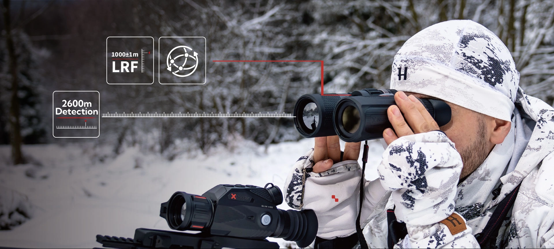 The QUEST features a detection range of up to 2600m and a build-in concealed LRF with a range of up to 1000m, allowing you to see farther and more accurately than ever before, It also supports ballistic calculation, providing data support for collaborative hunting.