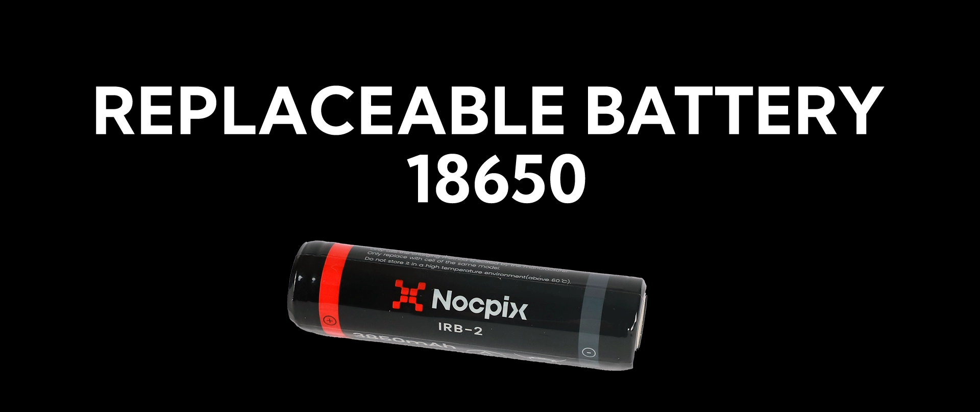 The replaceable 18650 battery is compatible with Nocpix LUMI, SLIM, and ACE products. It offers easy replacement, durability, and extended runtime for your thermal imaging and night vision operations.